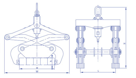 采用杠桿式工作原理,結(jié)構(gòu)簡單,動(dòng)作靈活,吊運(yùn)安全可靠。不需提供任何外力,靠自重鎖緊,開閉器定位,自動(dòng)實(shí)現(xiàn)鉗口的開閉動(dòng)作。