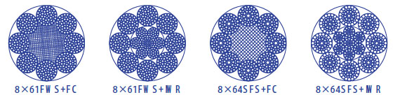 繩結構:8×61FWS+FC 8×61FWS+IWR 8×64SFS+FC 8×64SFS+IWR
